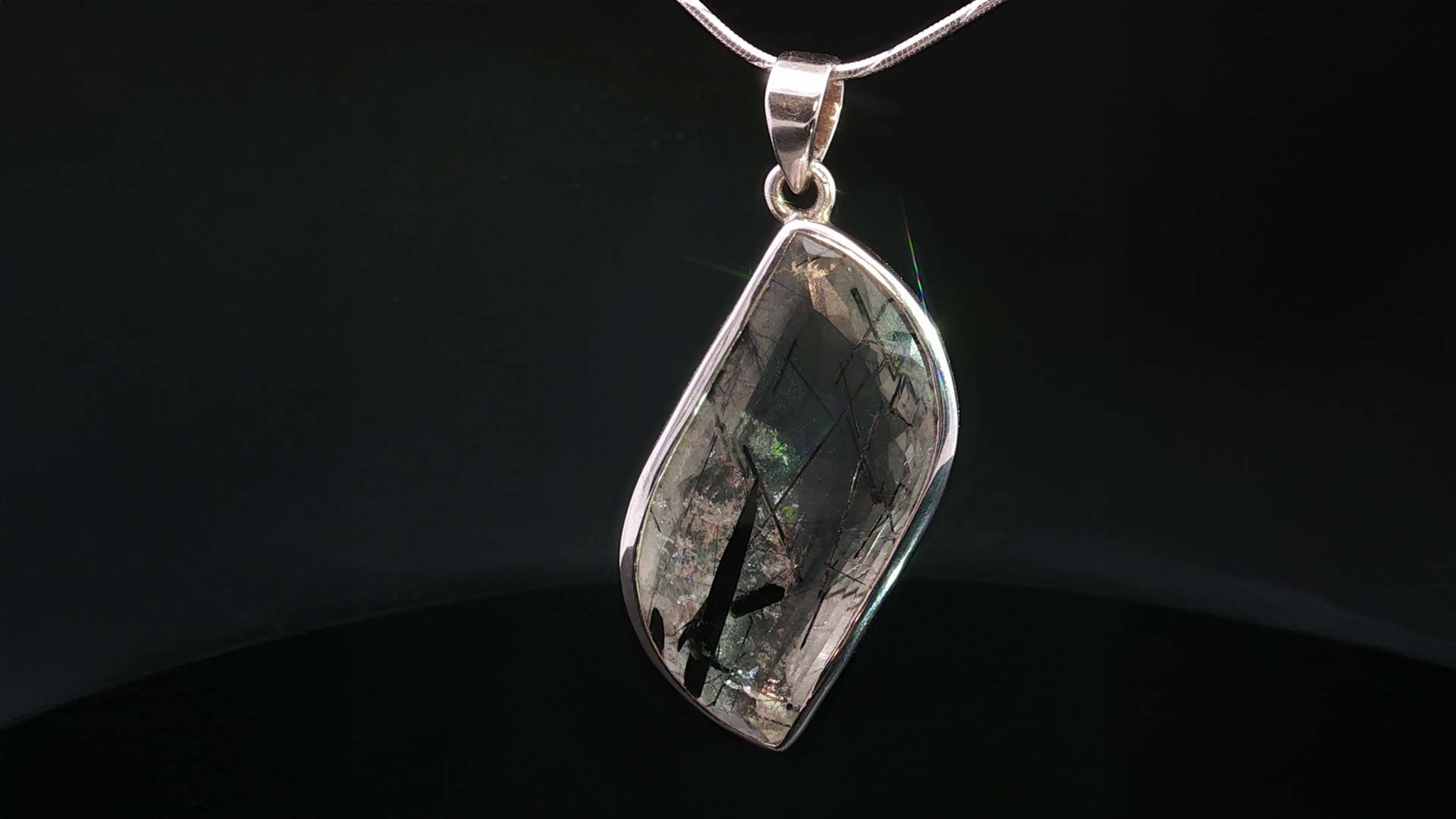 AMAROCKS - Shadow Veil Pendant – Black Needles Quartz (Tourmalized Quartz) in 925 Silver