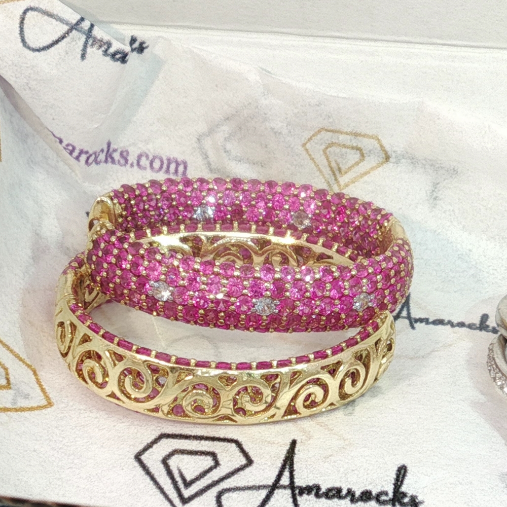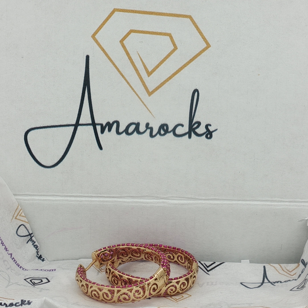 Exquisitely handcrafted, each hoop showcases an arrangement of pink sapphires, selected for their soft blush hue and captivating radiance. The sapphires create a graceful and enchanting display of color, evoking a sense of refined beauty.